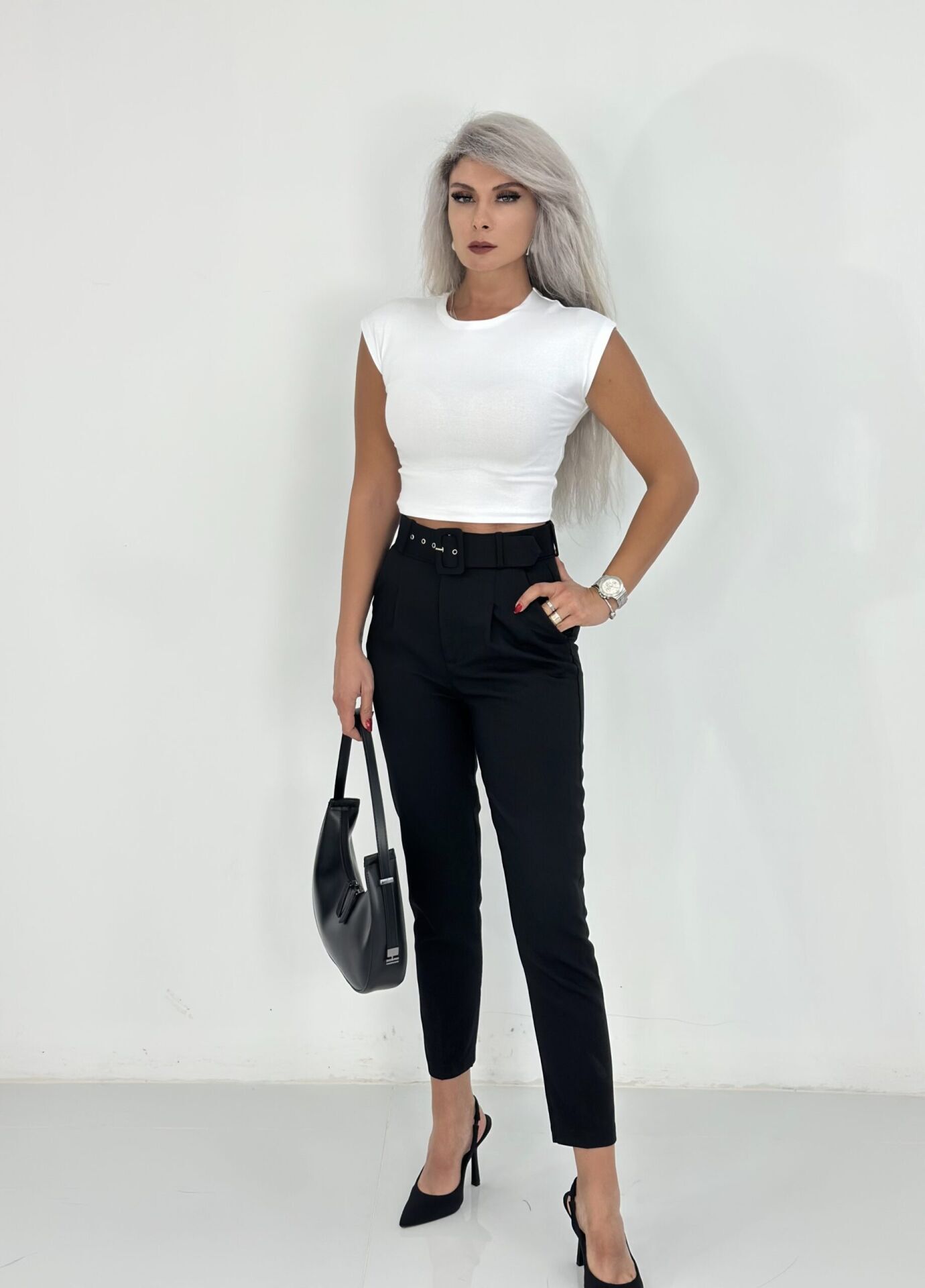 Siyah Kalın Kemerli Havuç Pantolon LARGE