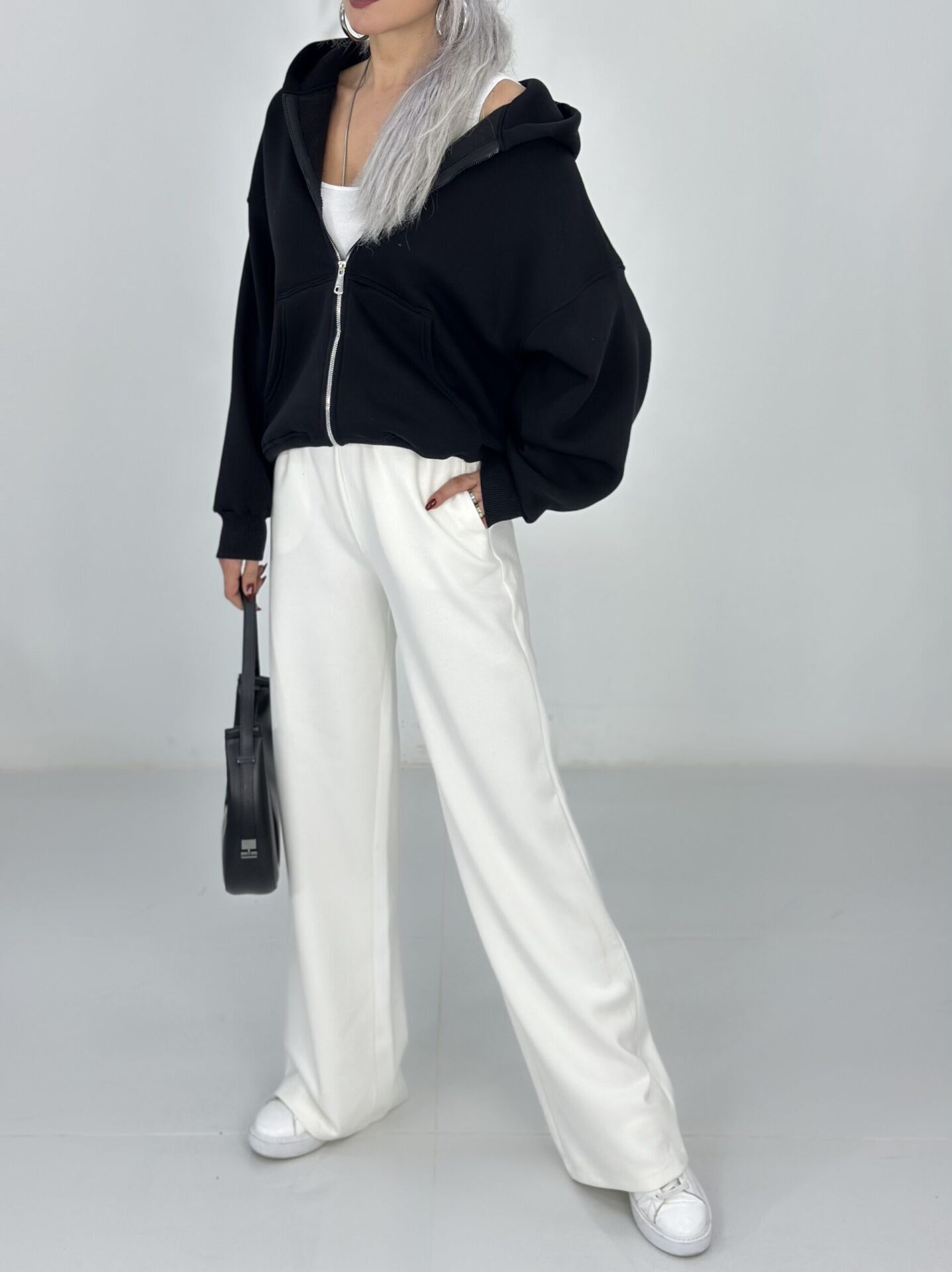 Siyah Kapşonlu Fermuarlı Sweatshirt