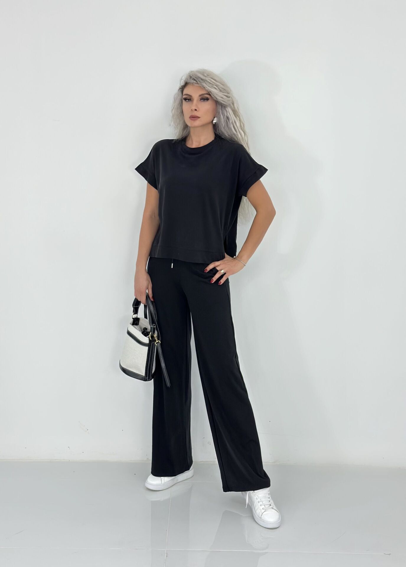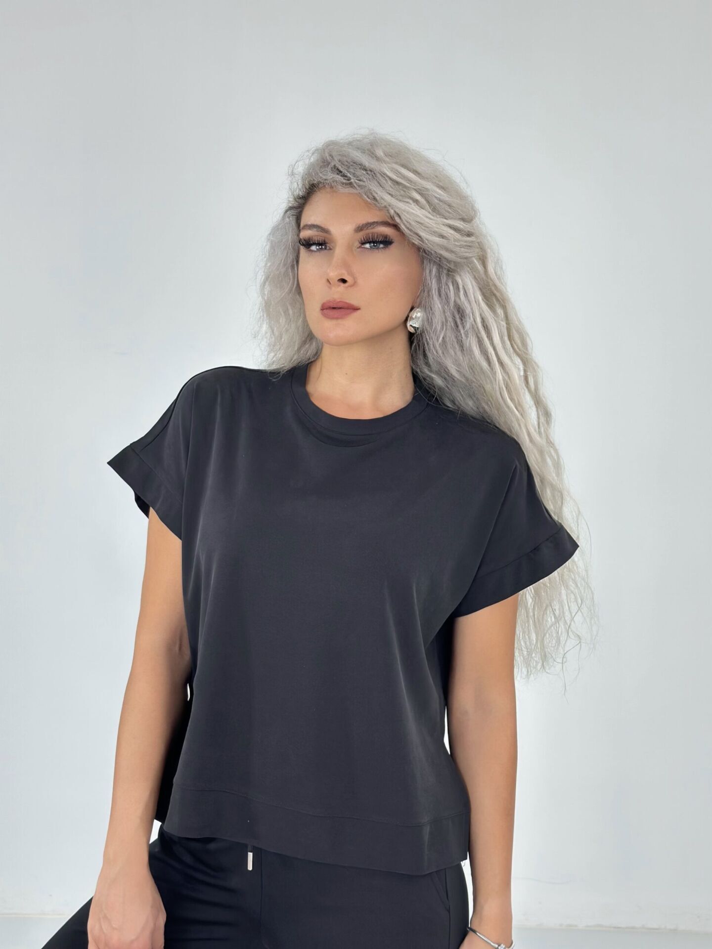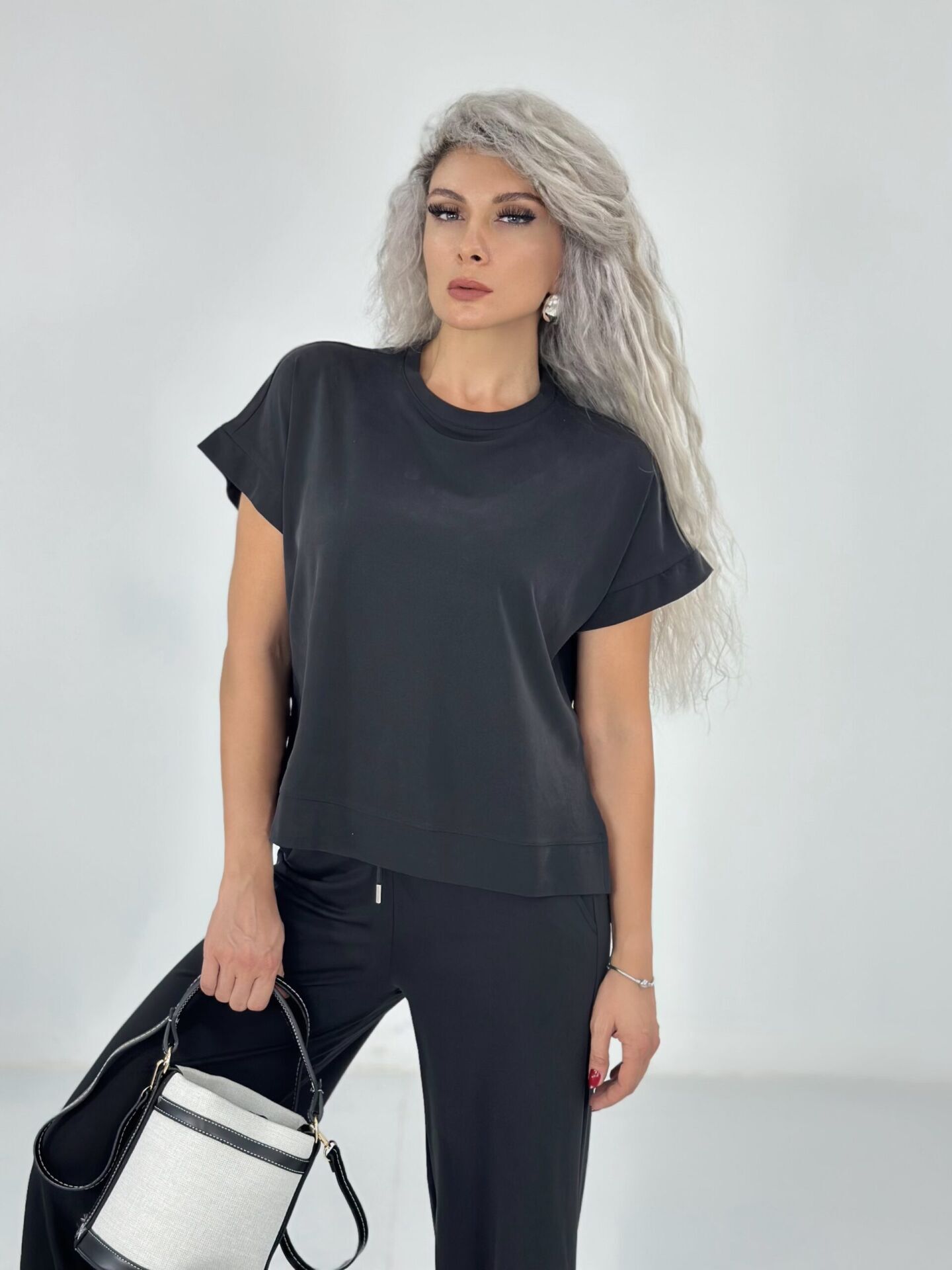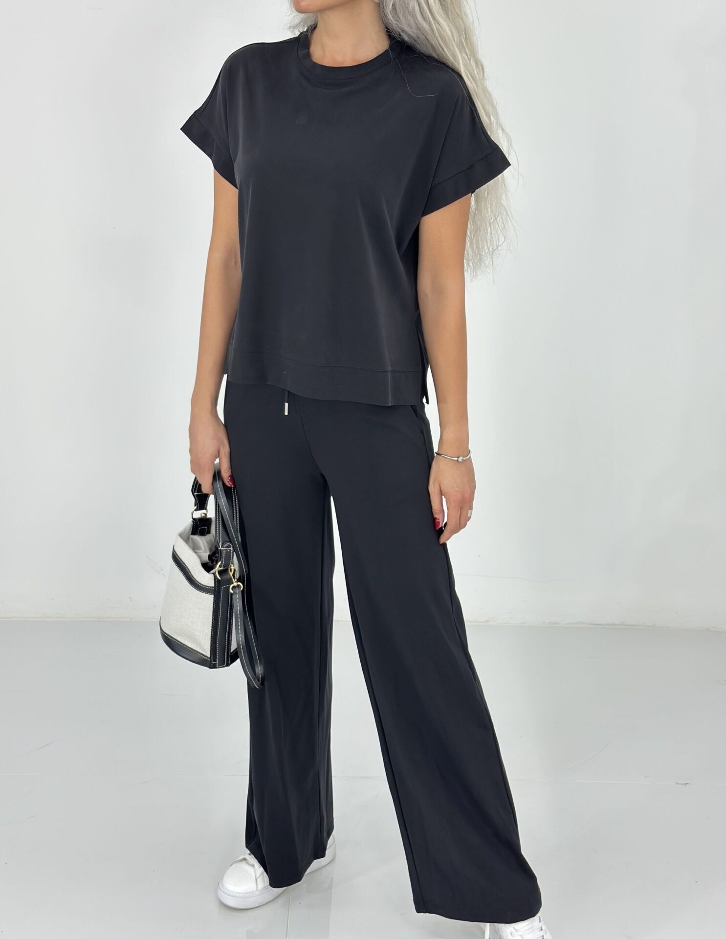 Siyah Kısa Kol Modal Kumaş Takım