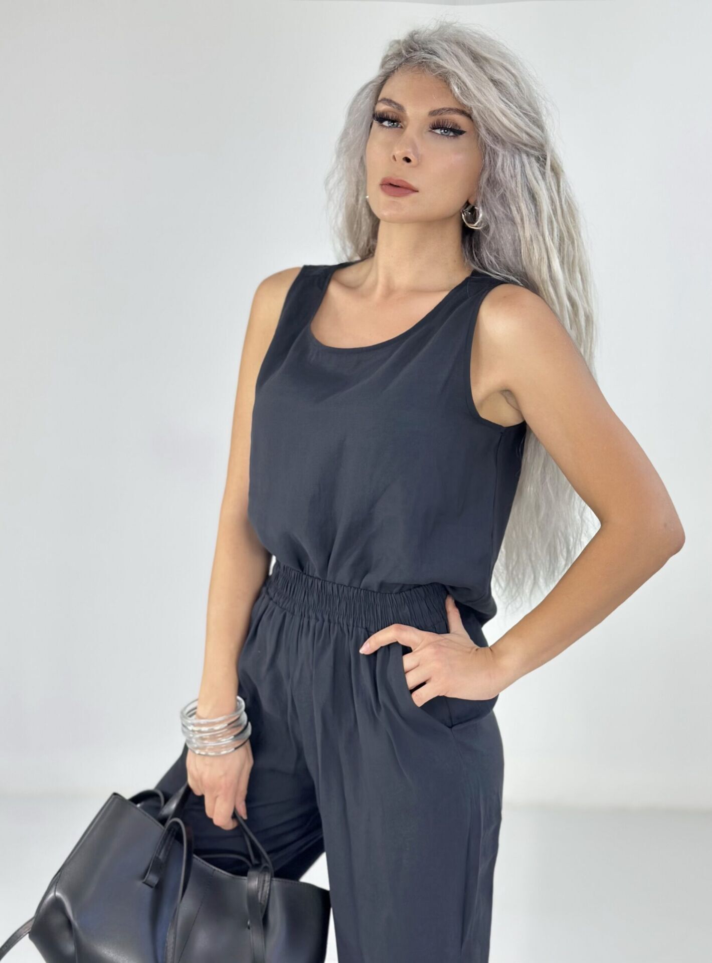 Siyah Tensel Kumaş Kolsuz Takım MEDİUM