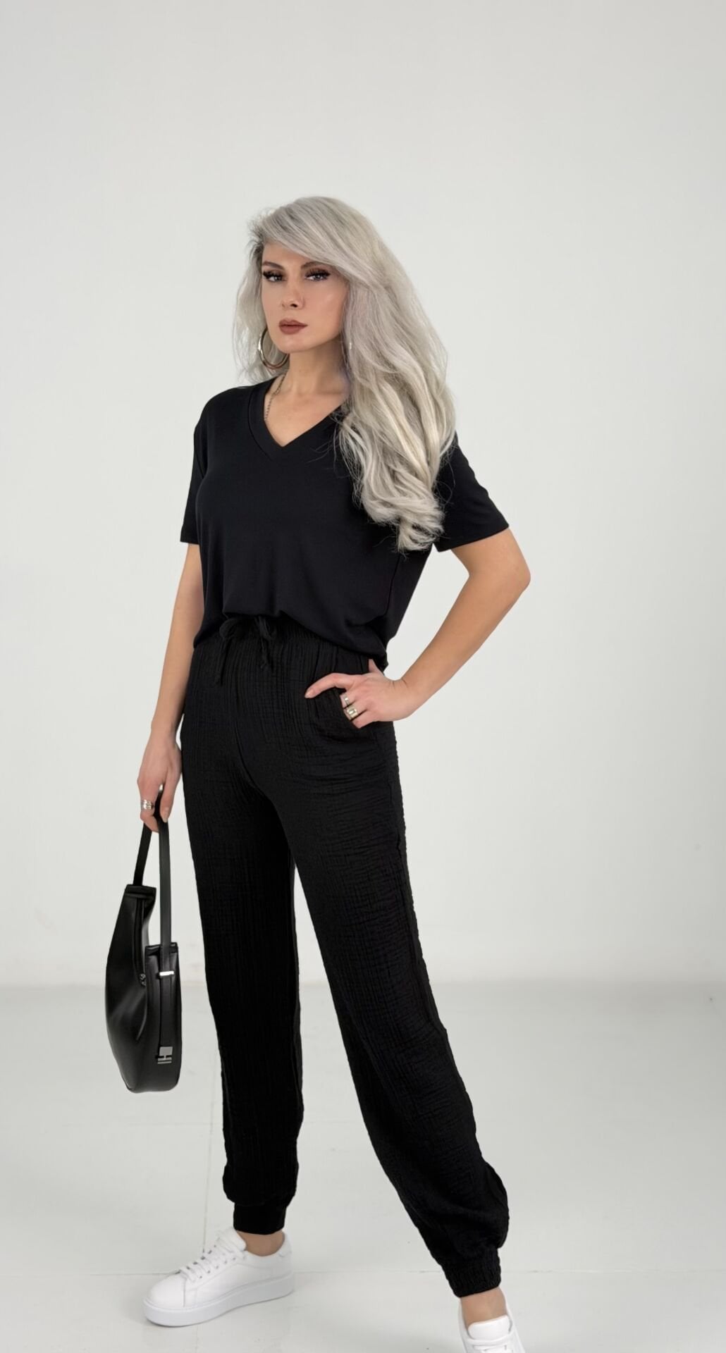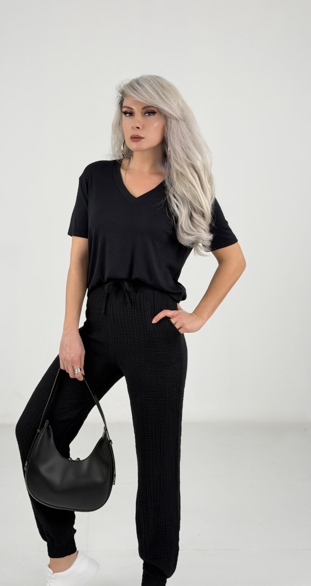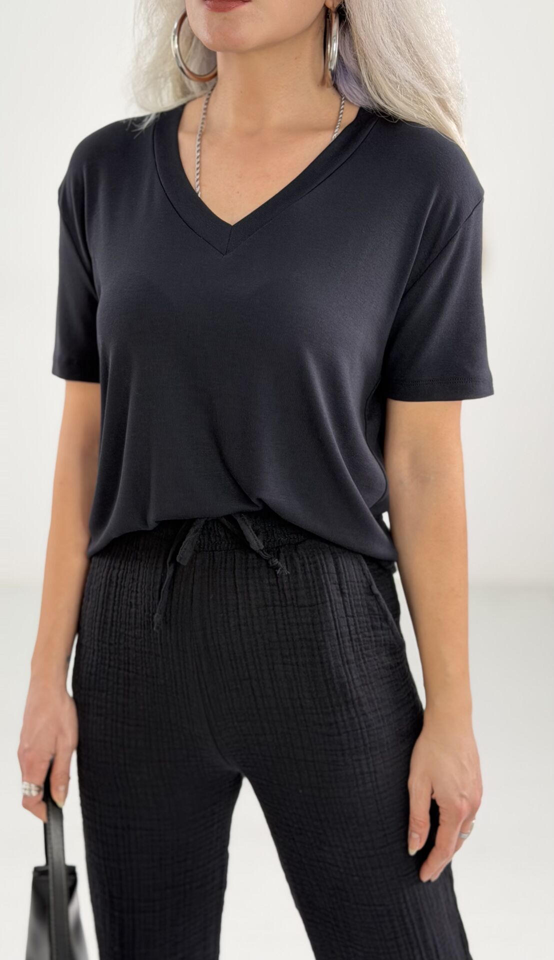 Siyah V Yaka Modal Kumaş Salaş Tshirt