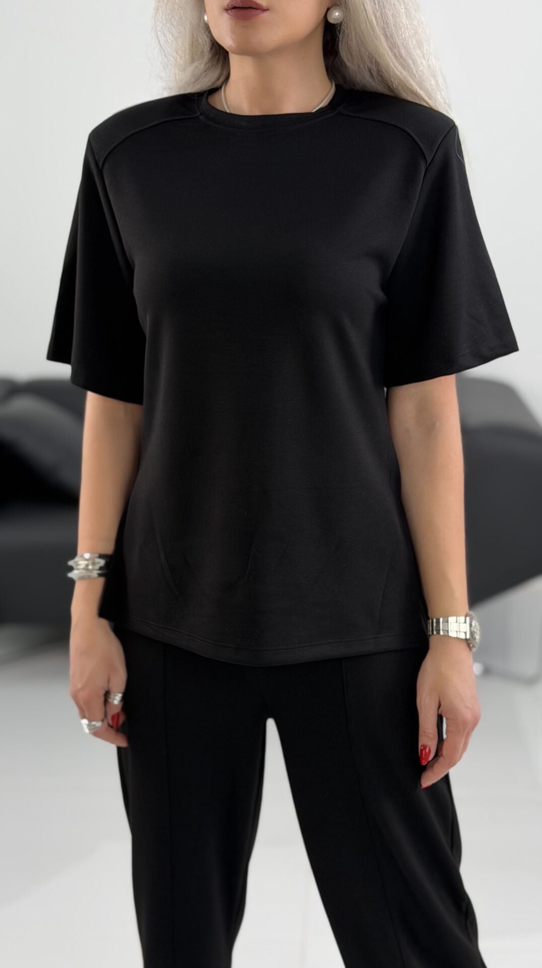 Siyah Vatkalı Yumoş Yırtmaçlı Thsirt Bluz