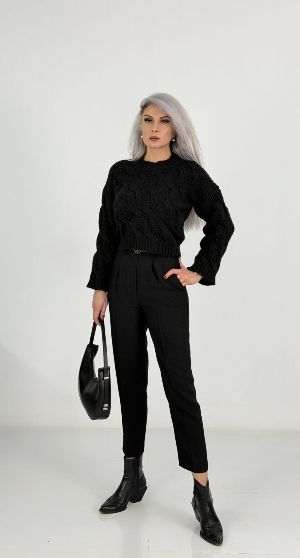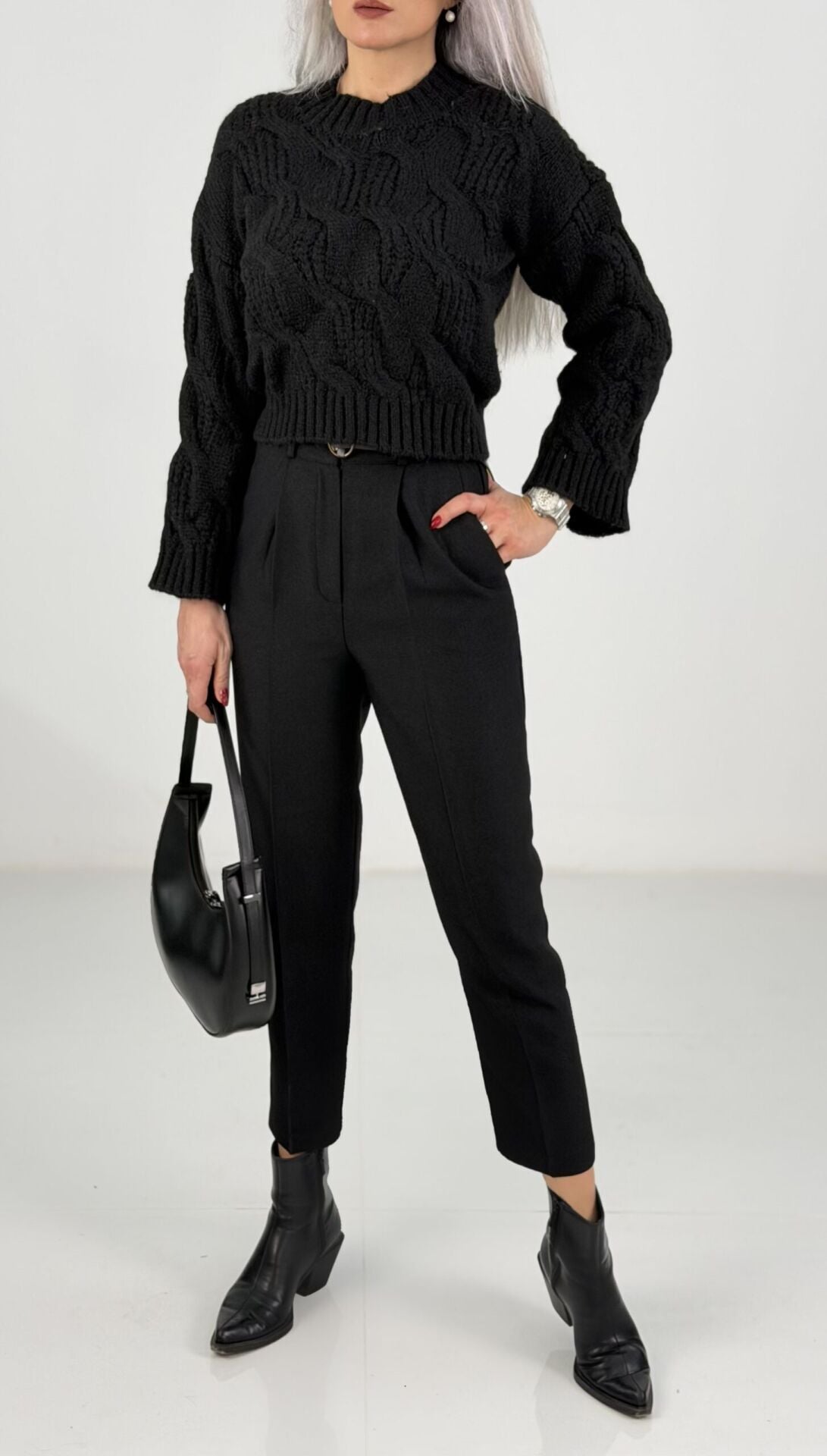 Siyah Yüksek Bel Havuç Kesim Kumaş Pantolon MEDİUM