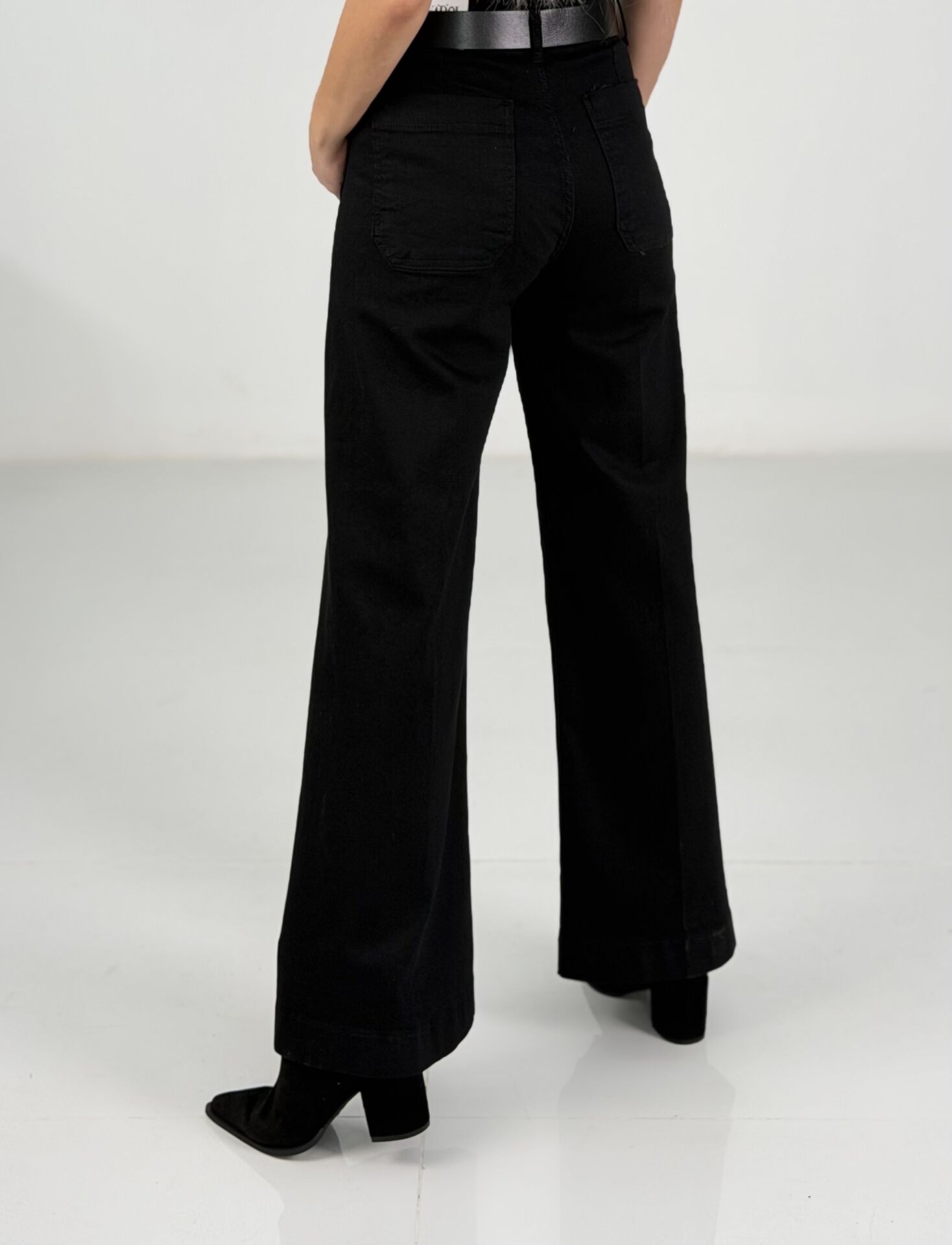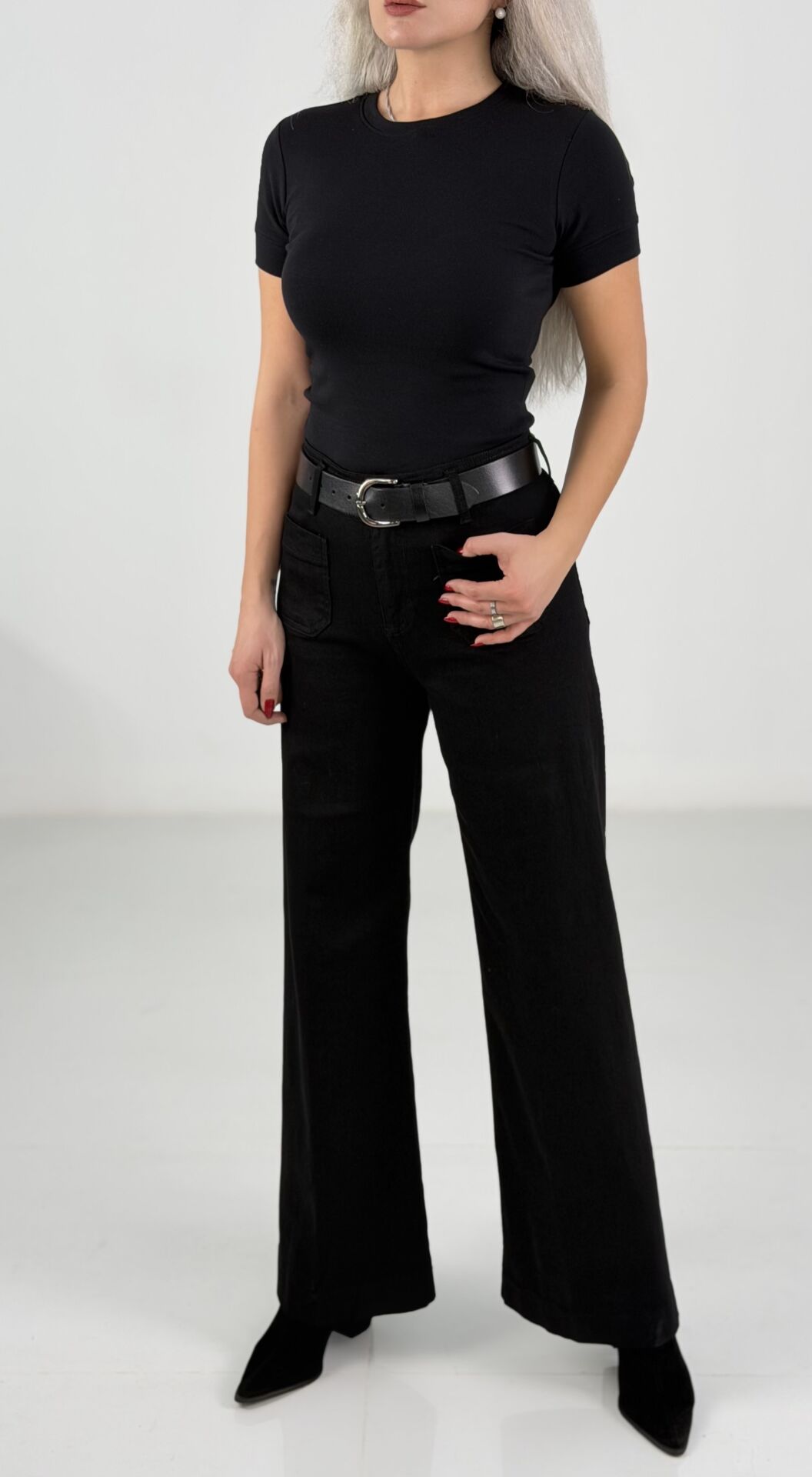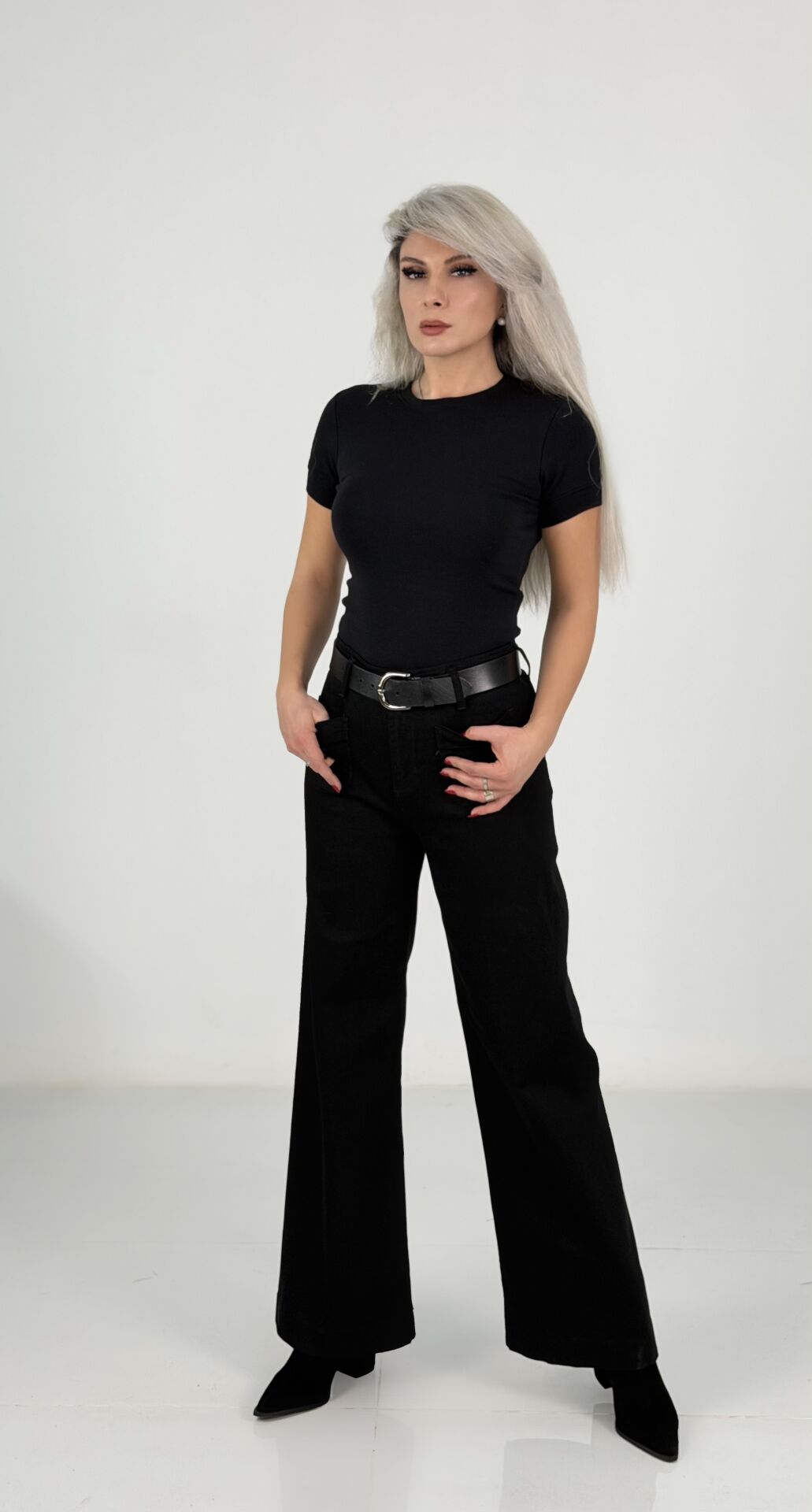 Siyah Yüksek Bel Likralı Geniş Paça Jean