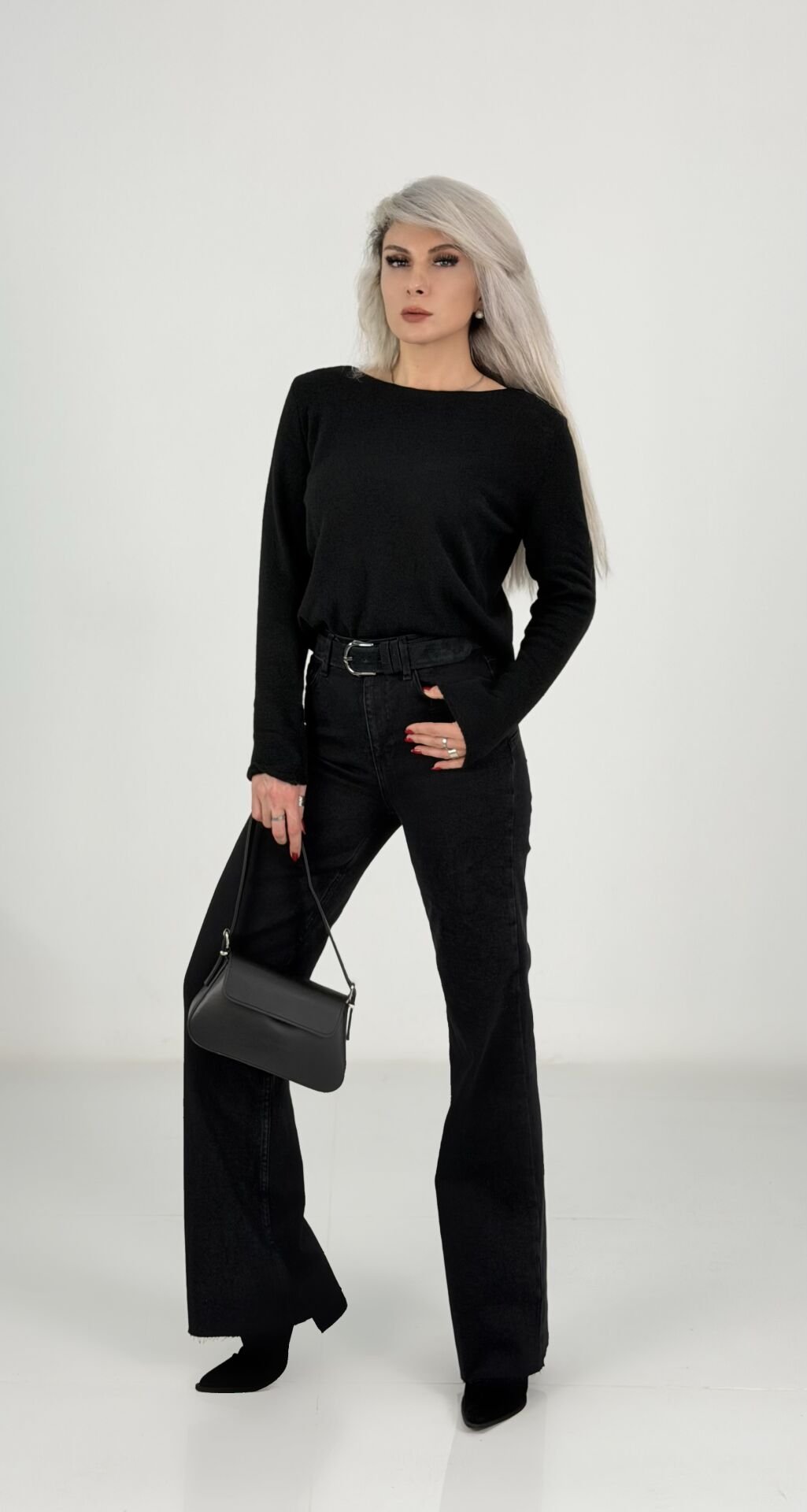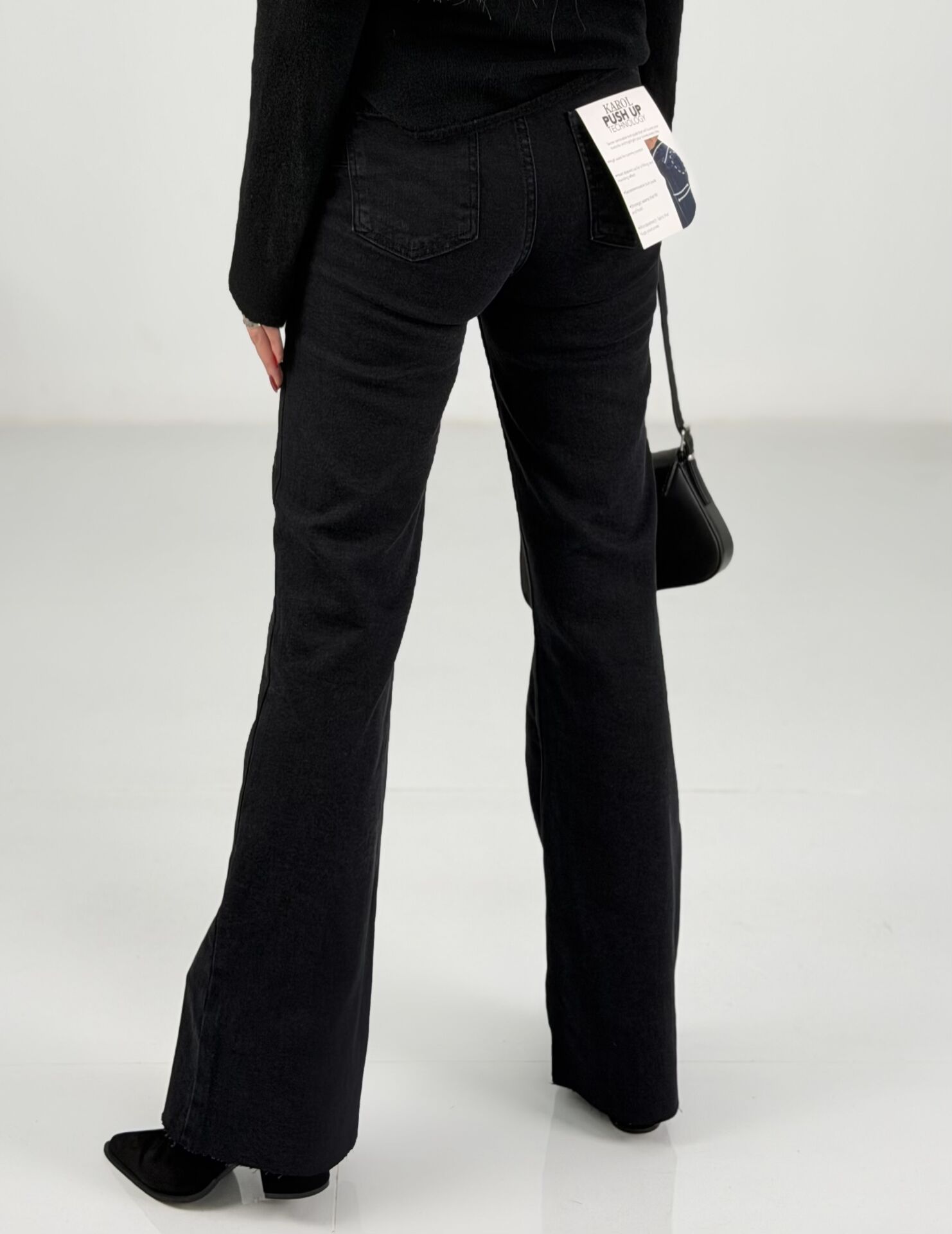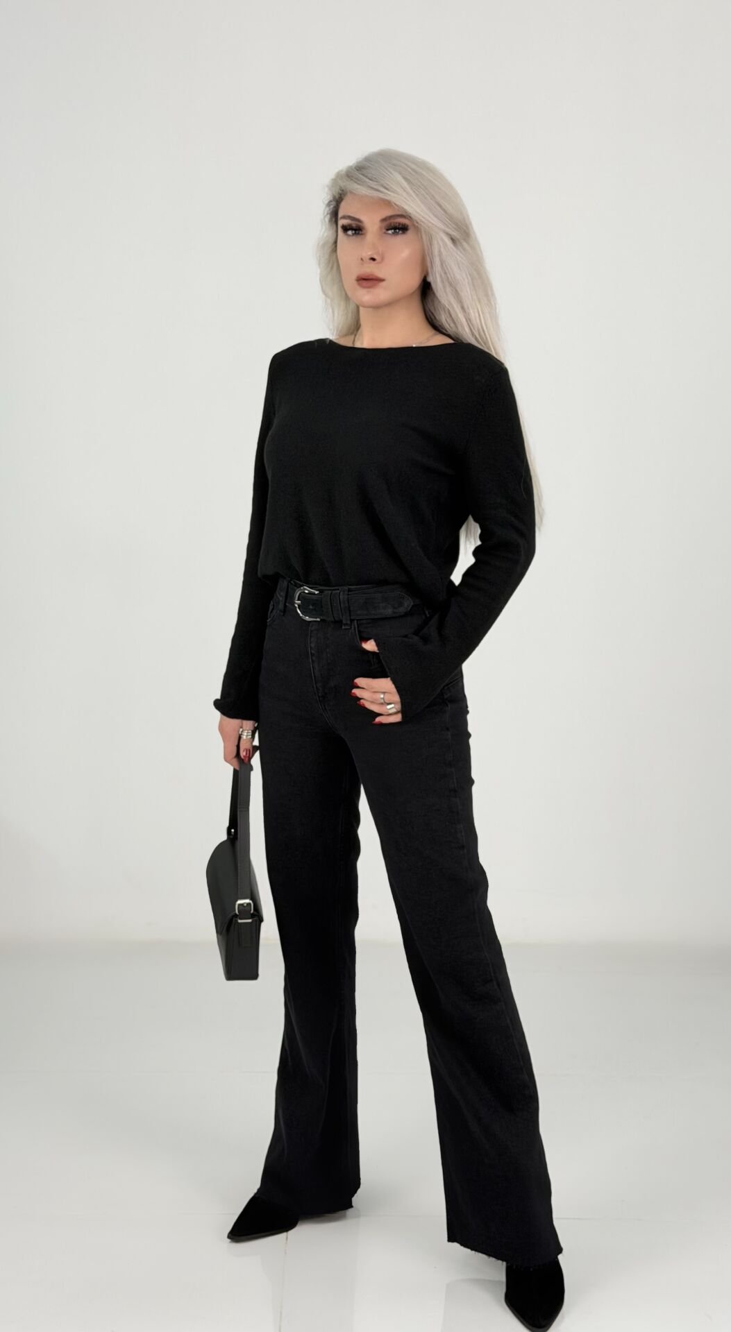 Siyah Yüksek Bel Likralı İspanyol Paça Jean