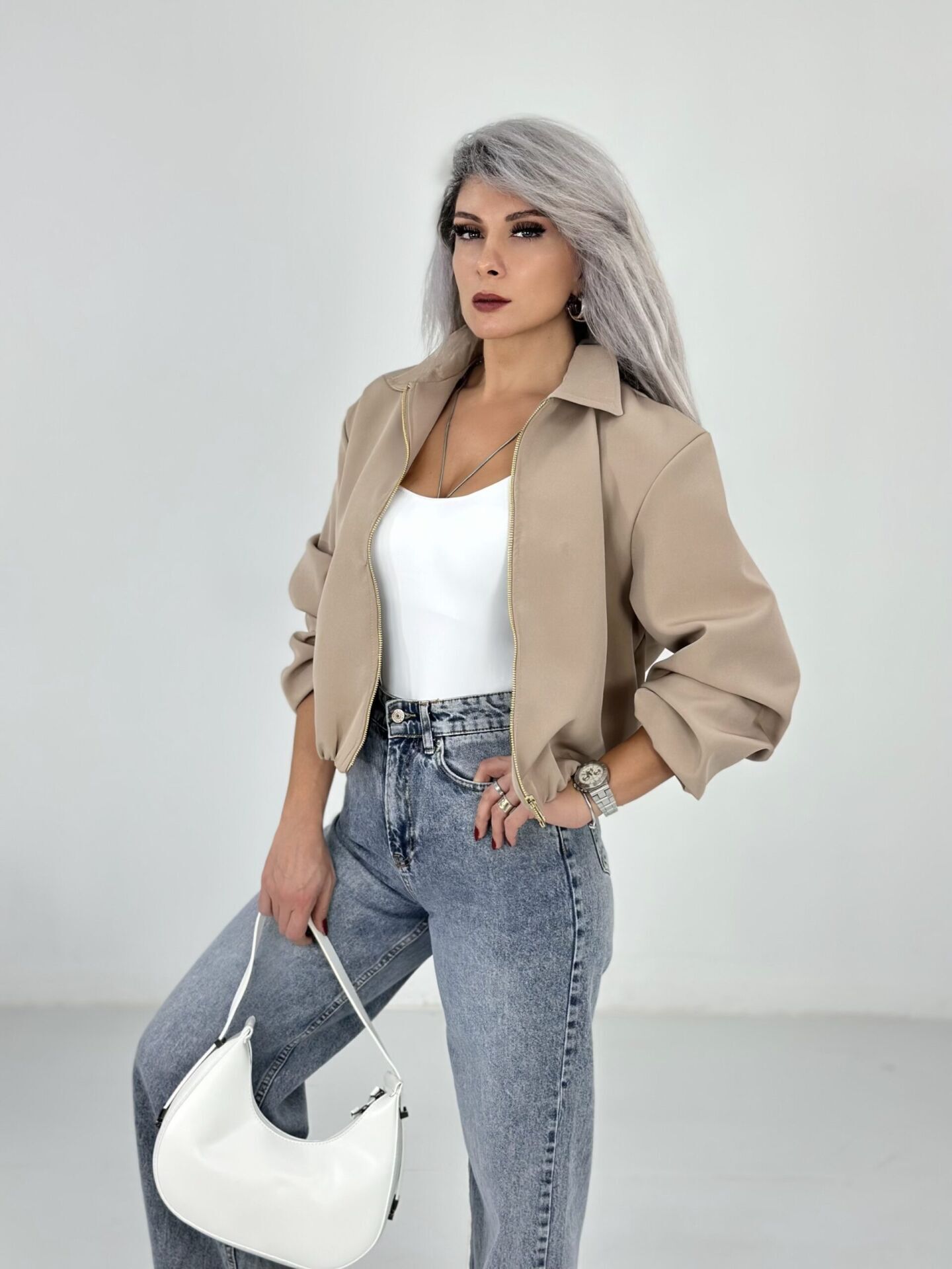 Sütlü Kahve Krep Kumaş Bomber Ceket MEDİUM